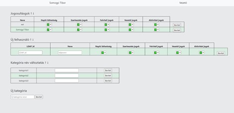Adatbázisban szinten, egy felhasználó táblára volt szükségem, egy jogosultság kezelő tábla, egy felhasználói